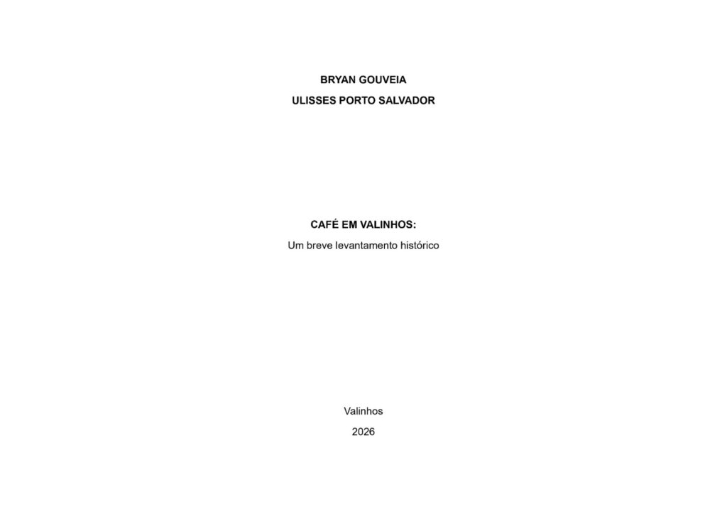 CAFÉ EM VALINHOS: UM BREVE LEVANTAMENTO HISTÓRICO
